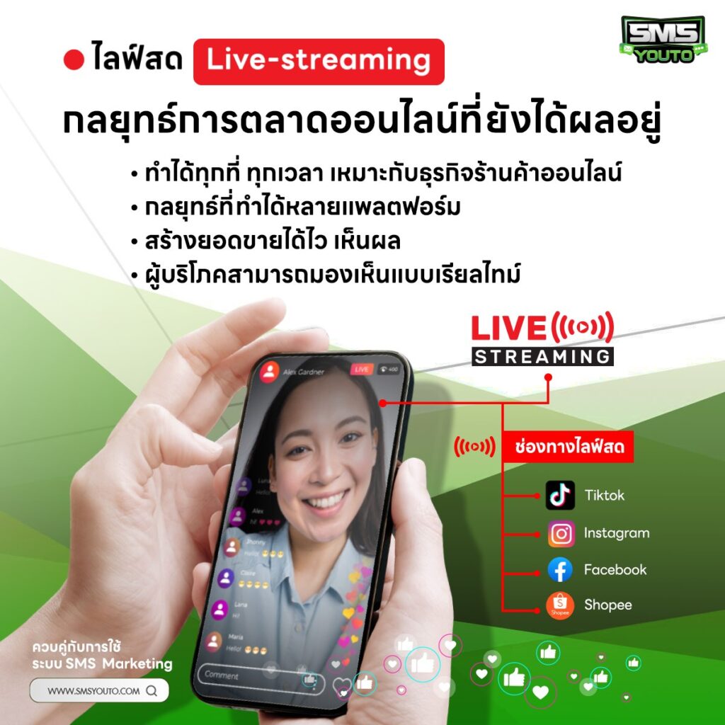 จึงไม่แปลกเลยว่า การไลฟ์สด เป็นอีกหนึ่งช่องทางนำเสนอสินค้า ที่สามารถกระตุ้นความอยากซื้อของกลุ่มเป้าหมายได้ไม่น้อย และถือเป็นกลยุทธ์การตลาดออนไลน์ที่ยังได้ผลอยู่ และช่วยให้ผู้ค้าออนไลน์ เพิ่มช่องทางในการขายสินค้าที่ได้มากขึ้น มีโอกาสได้สร้างปฏิสัมพันธ์กับลูกค้าแบบเรียลไทม์ และปิดการขายได้ทุกที่ทุกเวลานั่นเอง